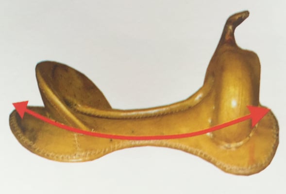 Der Abstand zwischen den vorderen Conchas wird sehr oft als Massangabe herangezogen um einen passenden Sattel zu finden. Dabei ist es den Sattlern und Herstellern völlig freigestellt, in welcher Höhe sie diese Conchas positionieren. Meistens jedoch befinden sie sich am Baumende. Misst man nun den Abstand zwischen den beiden vorderen Conchas, hat man die sogenannte Gulletweite ermittelt. Diese Gulletweite sagt aber gar nichts über die so wichtige Winkelung der Bars, den Twist und den Rock aus. Das Messen des Concho- Abstandes ist aus meiner Sicht somit absolut nicht zu gebrauchen um eine korrekte Sattelpassform zu bestimmen.